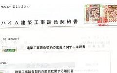ちょっと分かり難いが、変更に関する確認書も写っている。契約金額を変更する時に使う書面。200円の印紙が貼ってある。